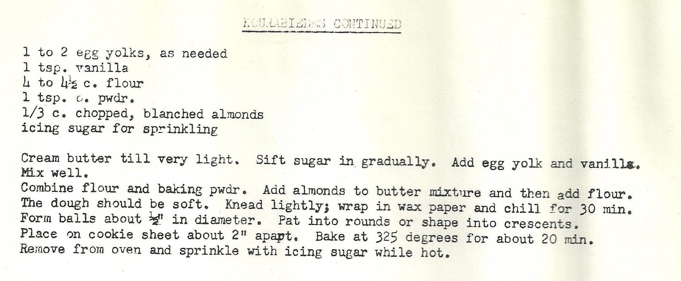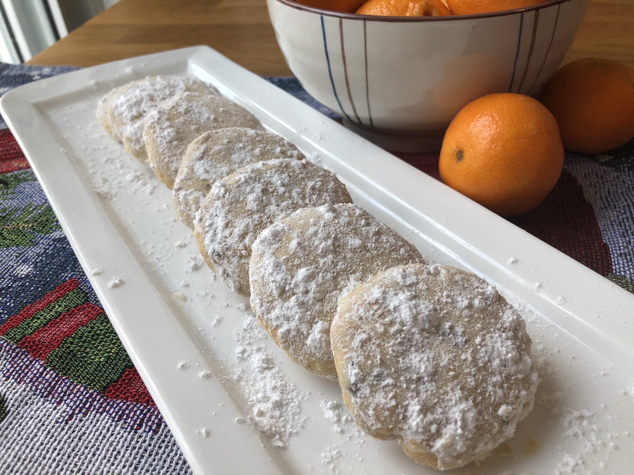 A delicate, melt-in-your-mouth shortbread for any occasion – but I have decided to categorize this as a “holiday” recipe because they are reminiscent of grandma’s whipped shortbread, the powdered sugar, of course, brings snow to mind, and they are simply divine with the use of a clementine where the recipe calls for an orange. I can’t say if I remember having these growing up, but I’ll definitely keep them in my holiday cookie rotation. They are a bit of a mashup of 2 of grandma’s recipes that were quite similar (see pictures below the recipe).