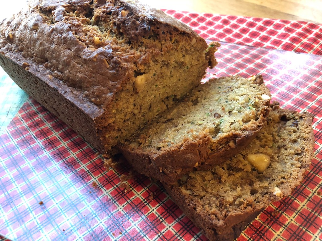 Mix the first set of ingredients together. In a second bowl, mix the second set of ingredients then add to the dry ingredients. If adding walnuts or raisins, mix them in now. If the mixture seems a little dry, add some soy milk (it depends on the zucchini).