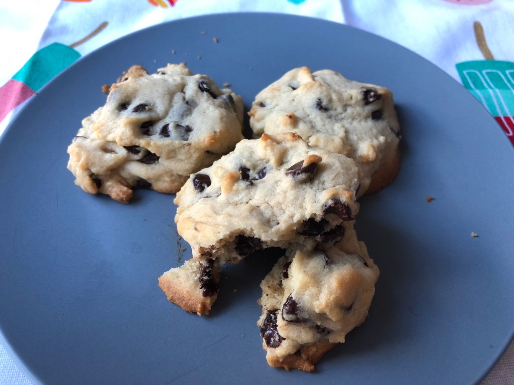 Add the dry ingredients to the creamed mixture. Mix in 3 cups of chocolate chips. Bake for 10-15 minutes, until edges are browned. If you prefer cookies to spread, flatten them with the back of the spoon before baking.