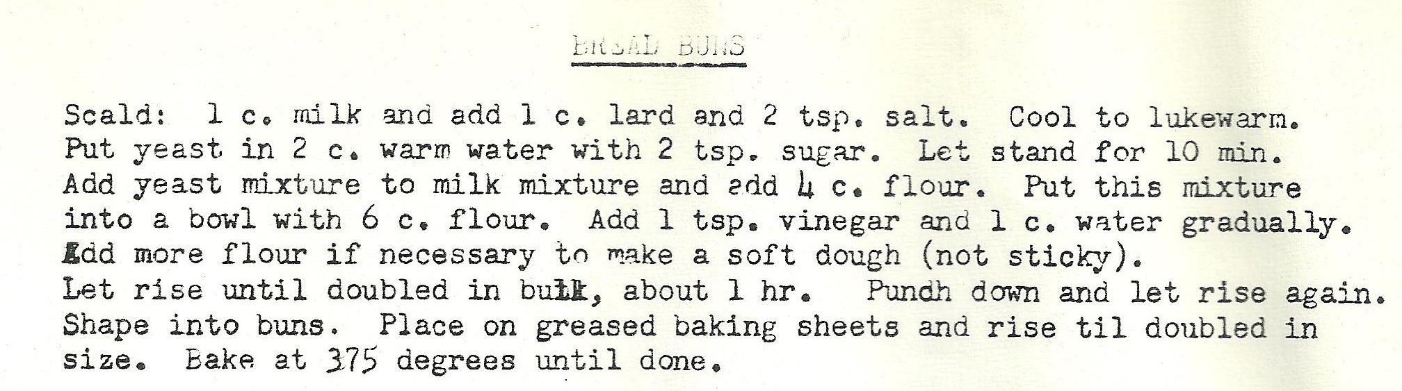 Gently punch down and let rise again. Shape into buns. Place on greased baking sheets and rise until doubled in size.