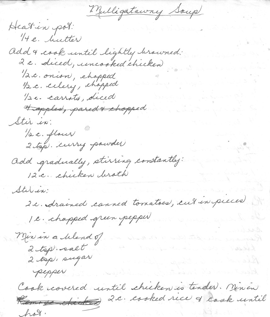 My wife used to make a mulligatawny soup in the early years of our relationship. Although this recipe is quite different from the one she used to follow, she remarked that she was surprised at how differently the different recipes started out but ended up in a very similar place. My mother omitted the apples in her own recipe so I did too – but I’ve kept it in the ingredients list as optional.