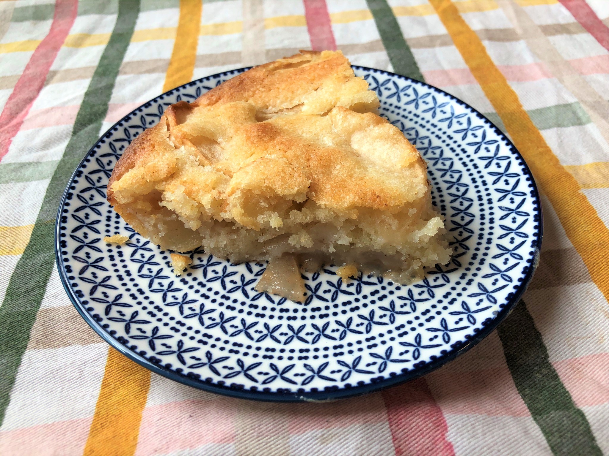 Pour the batter over the apples and smooth it out as much as you can. Bake in the preheated 350 degrees oven for 45-50 minutes, until the apples are baked through completely and the top crust is golden brown.