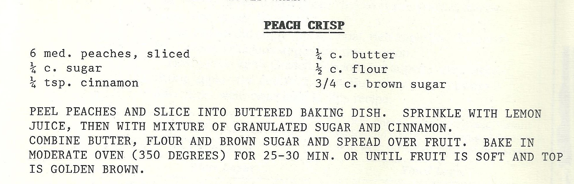 Yield: 8-10 servings (1 deep crisp in an 8” round casserole dish)
