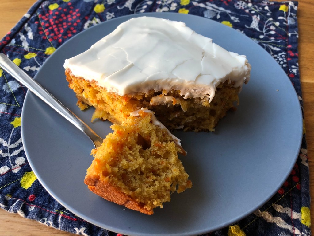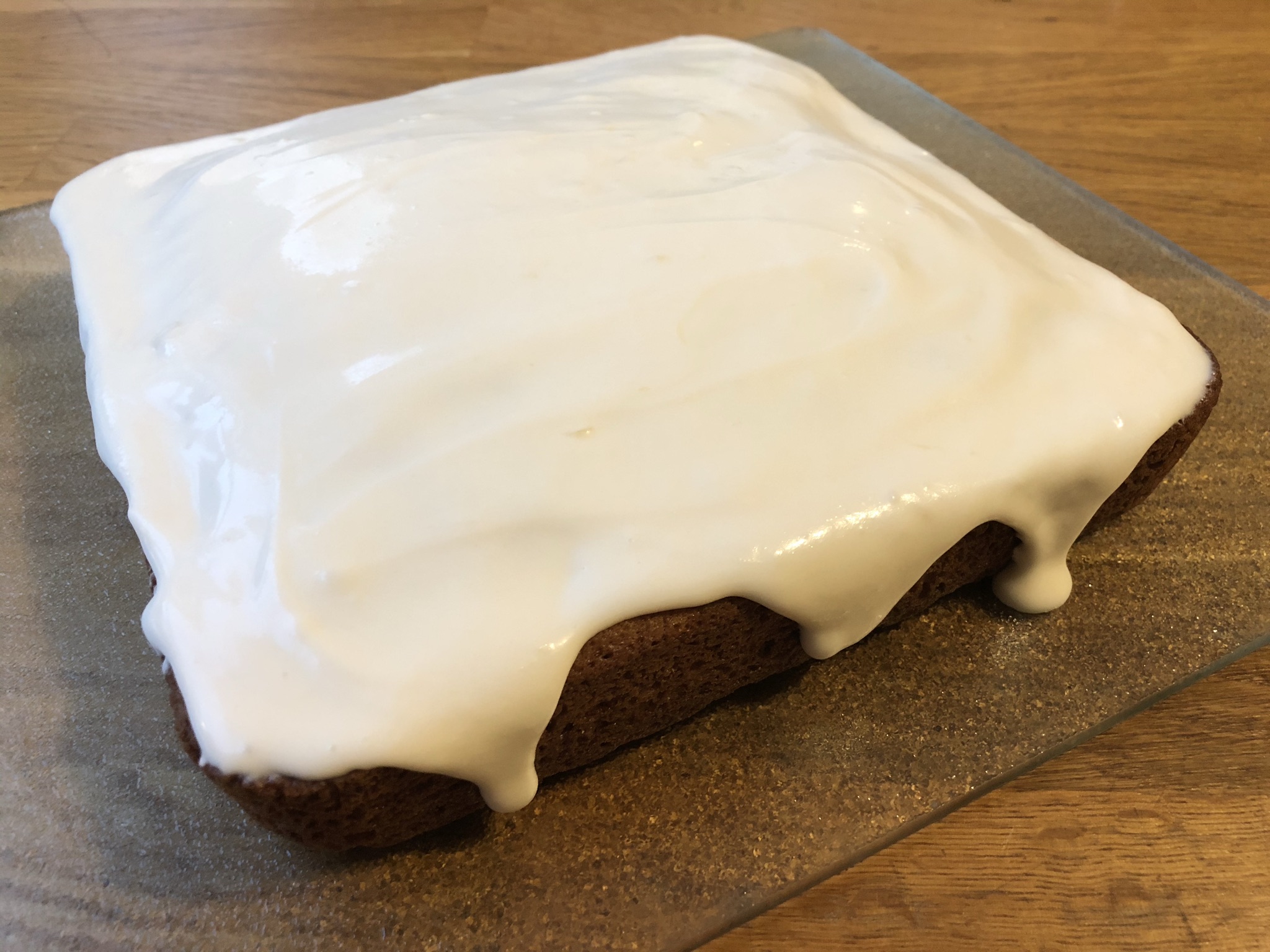 This was a moist-yet-light cake, perfect for a pick-me-up afternoon snack. I served this with sour cream frosting.