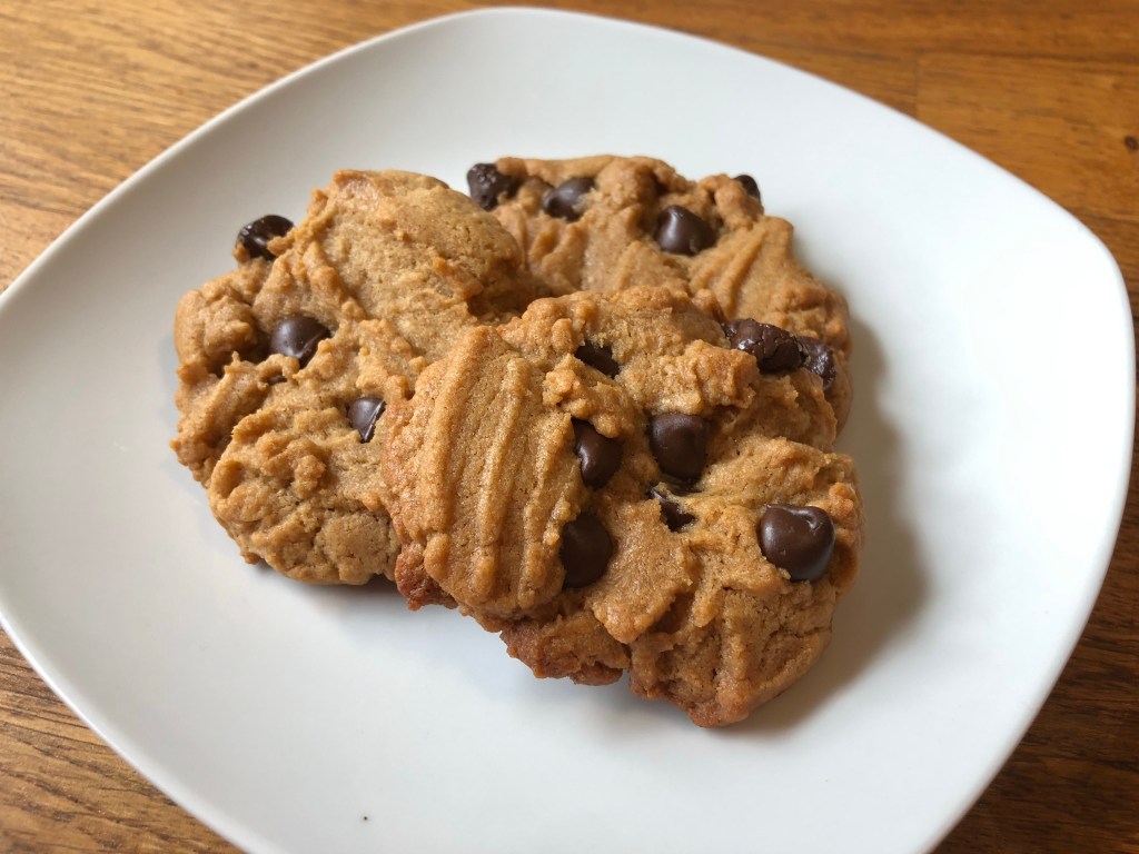 We made these cookies on the third anniversary of my mother’s death. My mom made a lot of peanut butter cookies growing up and my favourites were always when she added chocolate chips. I had recently exchanged some text messages with my niece who also had fond memories of peanut butter cookies at Gramma’s house so it felt like the perfect recipe to bring forward to my kids as something they would have likely done with Gramma, if she were still here with us. Thanks to Martha Stewart for this recipe, which I have adapted.