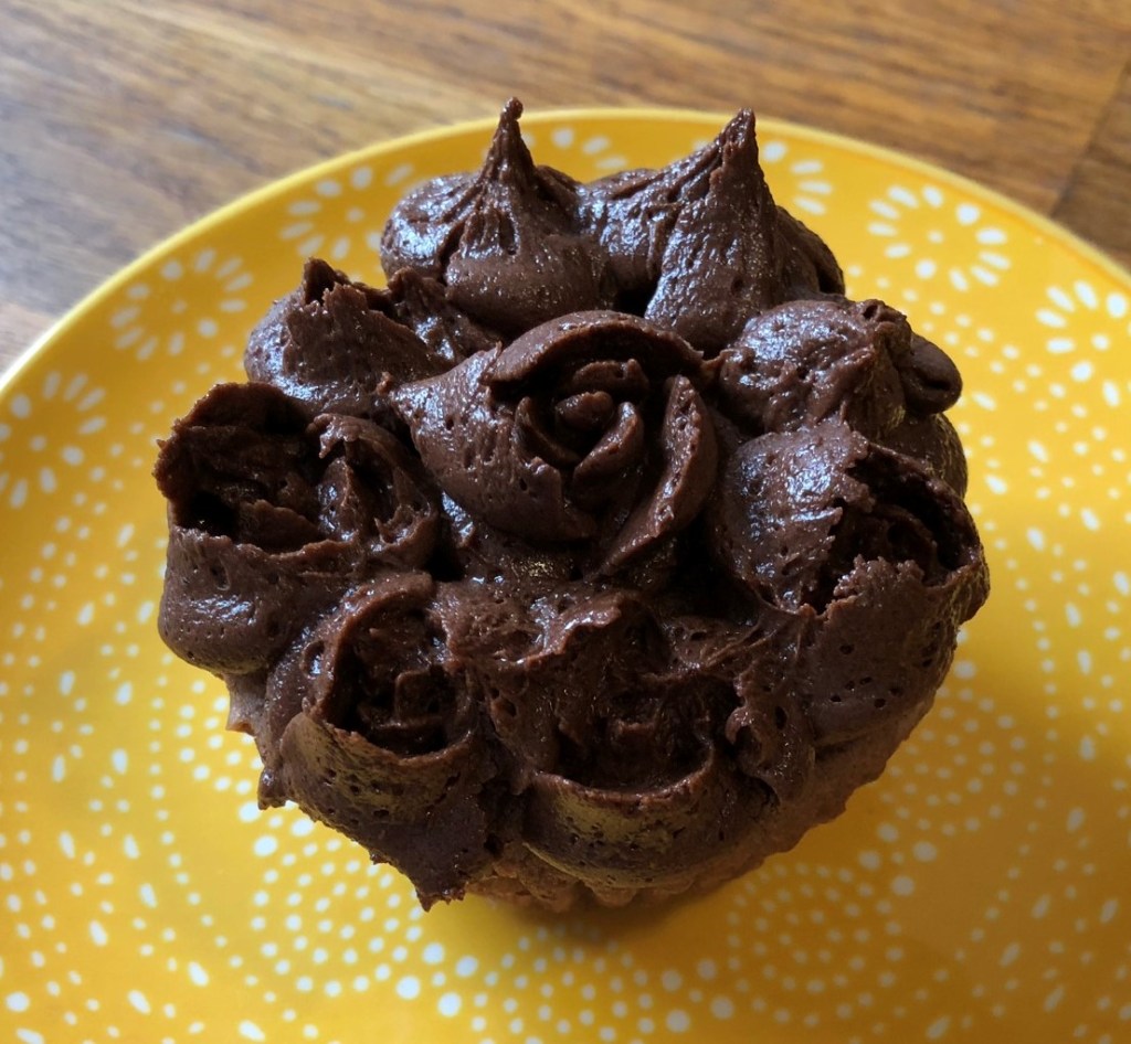 Whisk together the icing sugar and cocoa powder and set aside. Cream the Earth balance in a stand mixer and add the icing sugar/cocoa powder mixture 1 cup at a time. Add salt and vanilla. If the buttercream is too thick, add soy milk, 1 tbsp at a time until desired consistency is reached.
