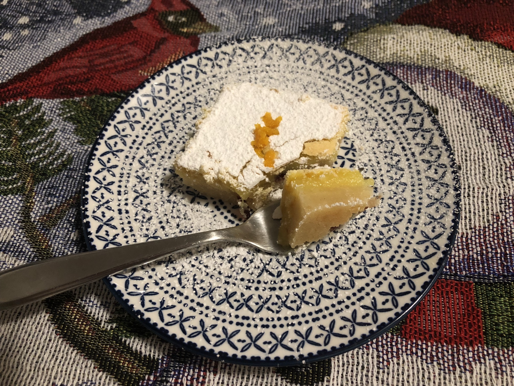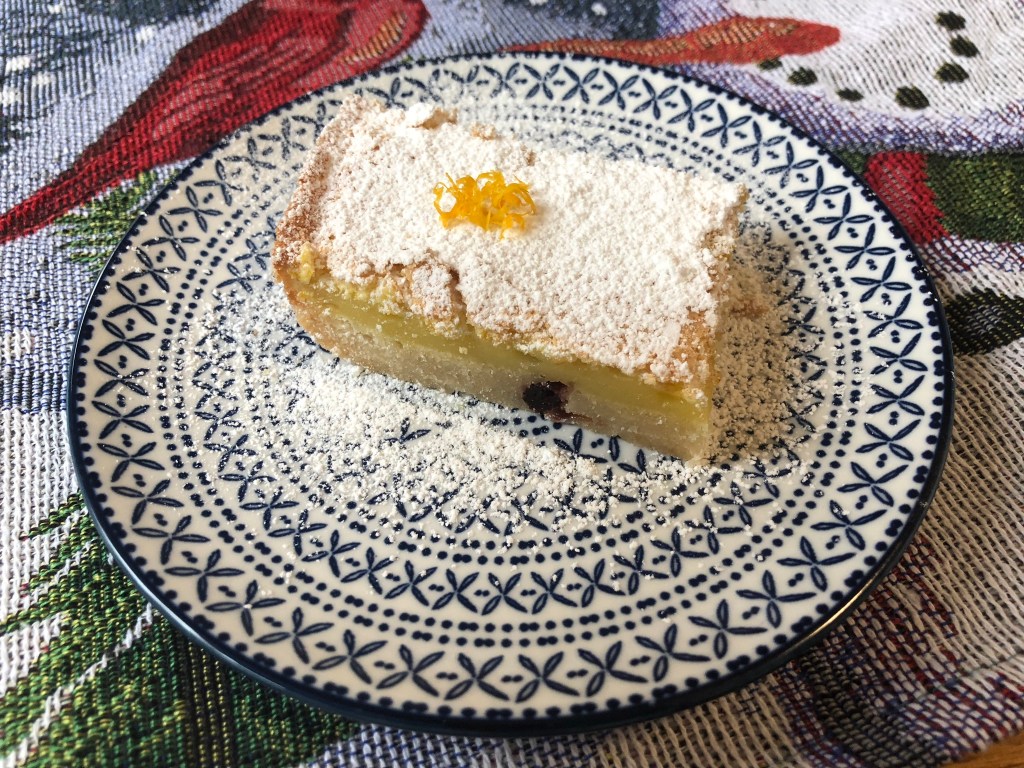 What a perfect combination! Shortbread base, custardy middle, and a crispy sweet top! I added dried cranberries to level-up Grandma Donna’s recipe.