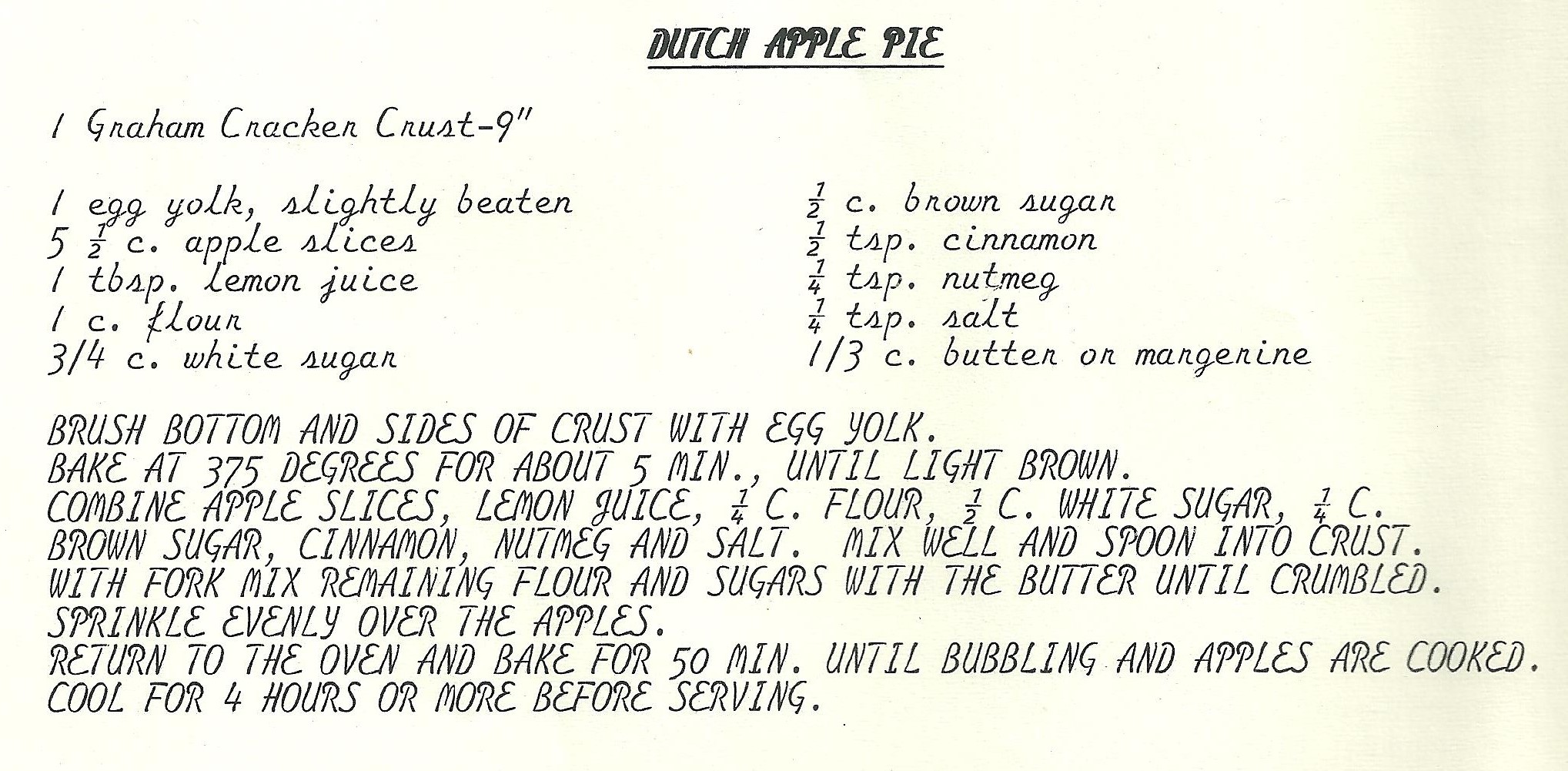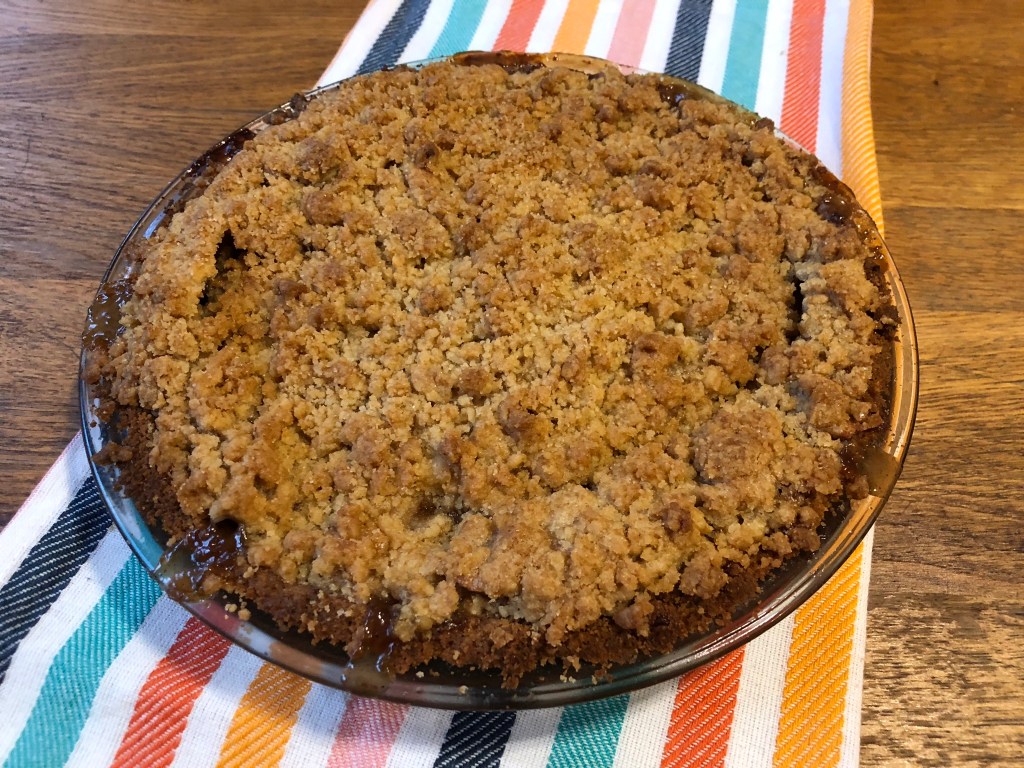 Grandma’s recipe called this a “Dutch Apple Pie” and I thought it was so titled on account of the graham cracker crust. I have since learned that a Dutch Apple Pie is one that has a crumble topping. Grandma paired the crumble with a graham cracker crust – a delicious pie in its own right but, as someone who prefers a more savoury crust, I think I’ll make this with Grandma’s pastry next time.
