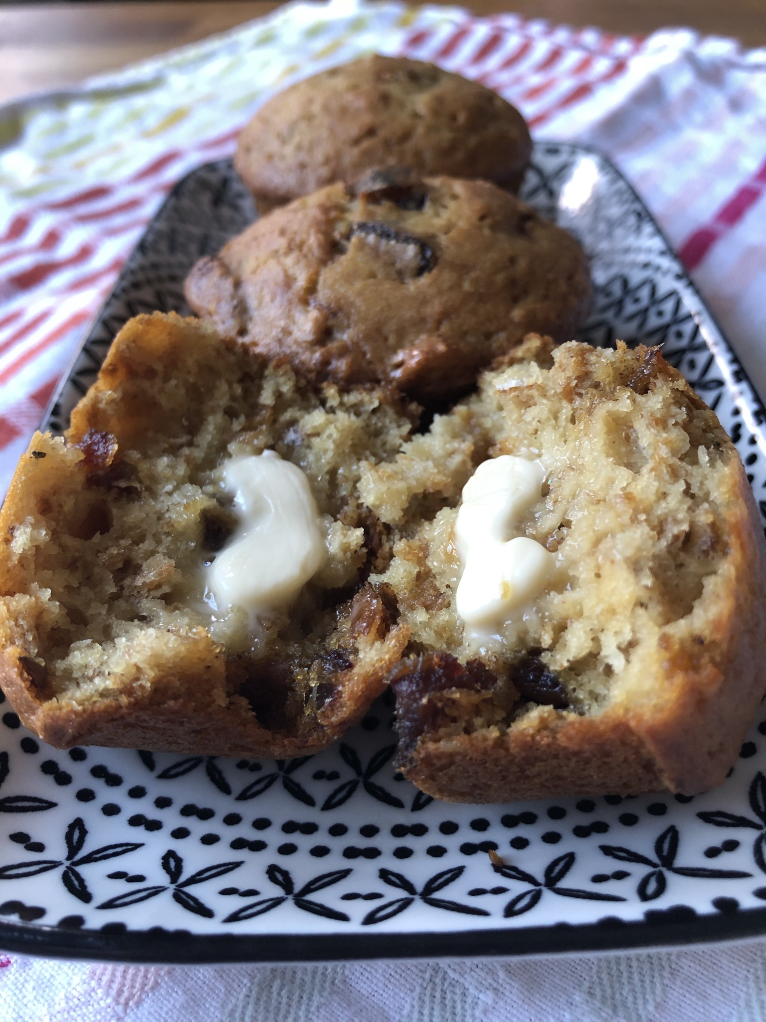 These muffins are delicious if split while hot and spread with Earth Balance or plant-based creme cheese.