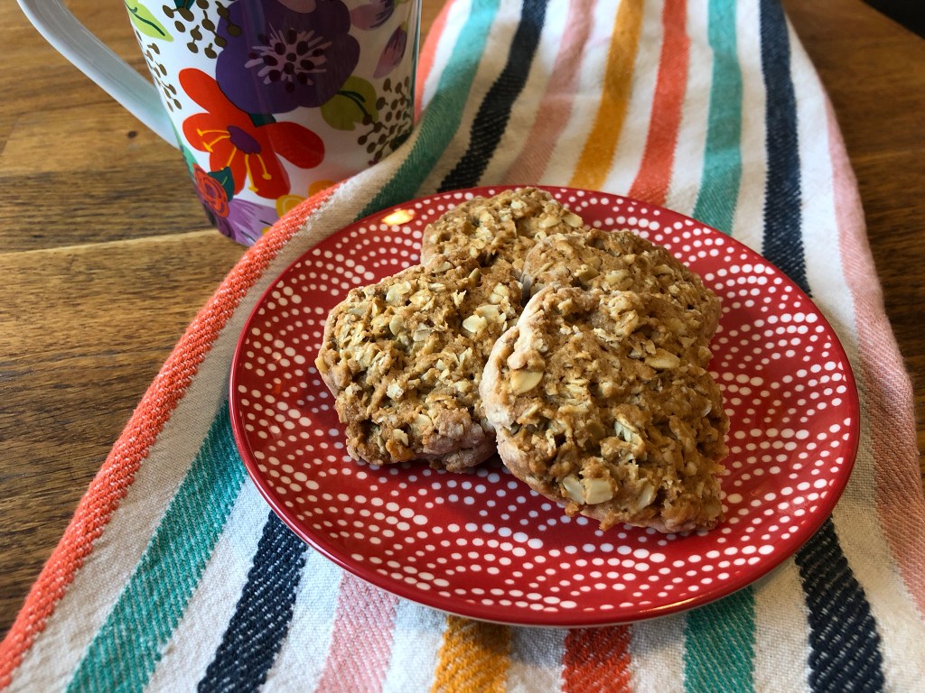 This was another of those recipes where I didn’t know quite what I was making until I was done. Growing up I used to LOVE the “Dad’s Oatmeal Cookies” – crunchy, salty, sweet. I could nosh on a half dozen without noticing. These remind me of those.